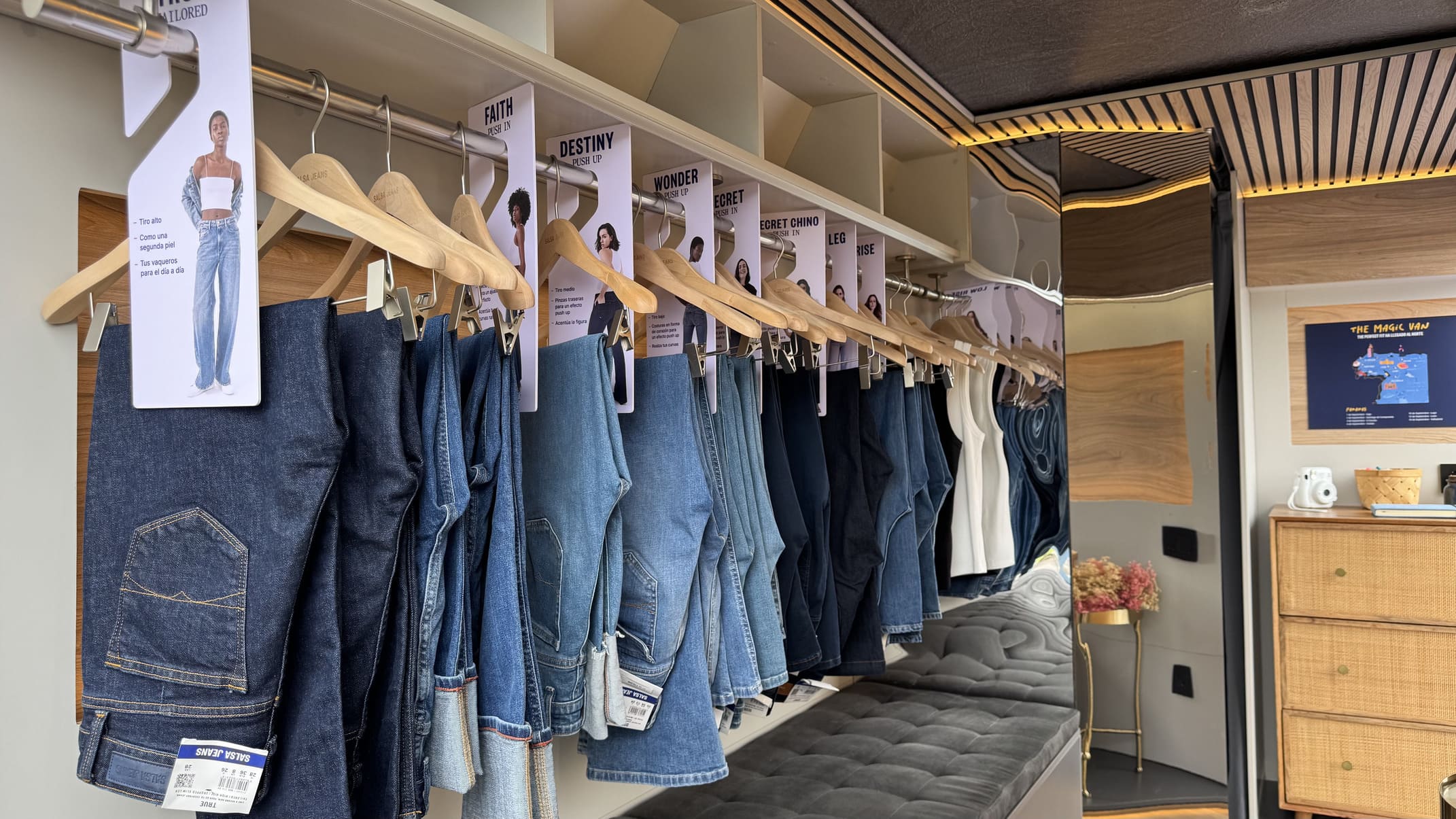 Mais do que uma ação promocional, a Magic Van oferece uma experiência de prova gratuita, fora do ambiente habitual de loja. No interior da carrinha, as visitantes encontram sofás, espelhos e um ambiente acolhedor, onde podem experimentar os sete modelos femininos icónicos da marca — Secret, Faith, Destiny, Wonder, Low Rise, Wide Leg e True — disponíveis em todos os tamanhos. A ideia é simples: descobrir o “Perfect Fit” em jeans, o momento em que uma peça encaixa na perfeição, respeitando o corpo e elevando a autoestima.