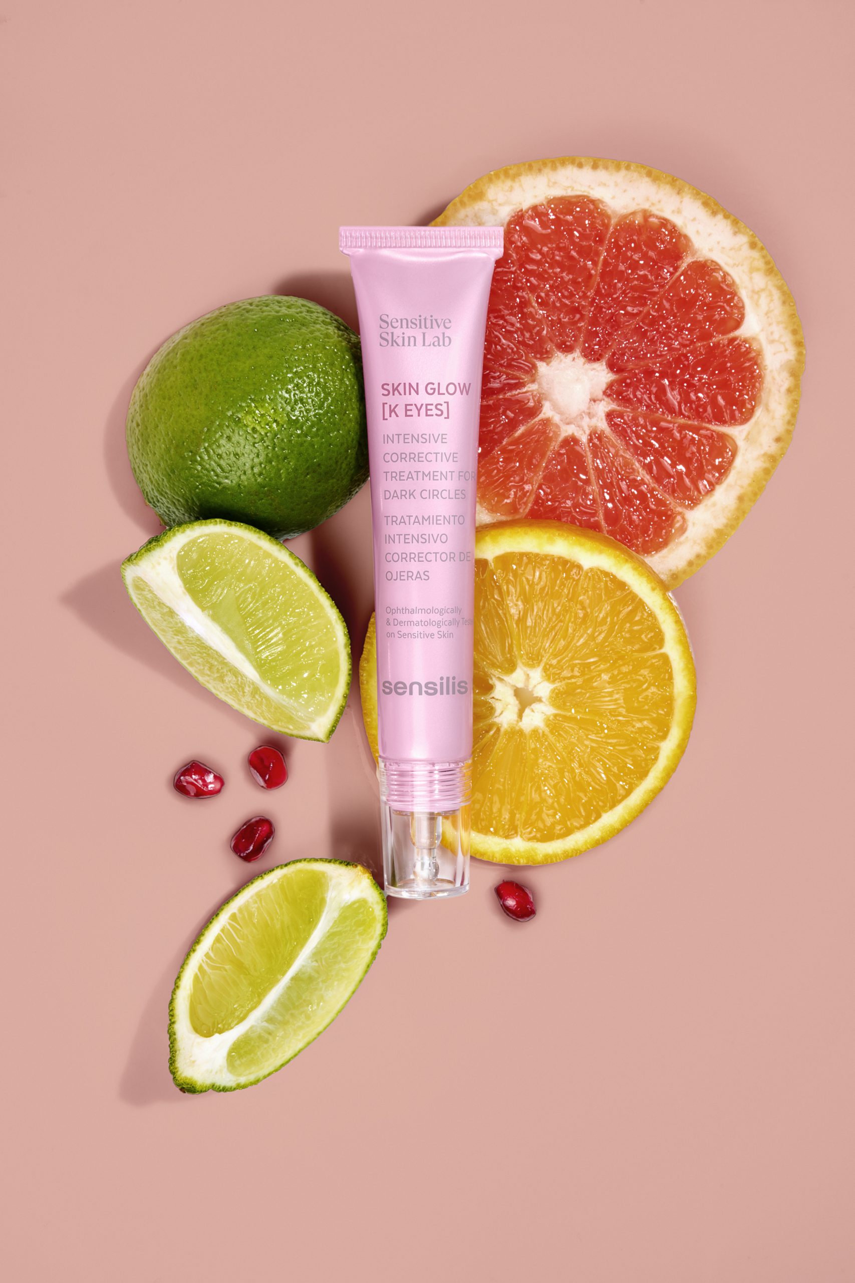 SKIN GLOW [K EYES]: Tratamento intensivo que melhora em 30% a luminosidade e corrige a coloração de todo o tipo de olheiras. Com pigmentos salmão que ajudam a disfarçar as olheiras e pigmentos para aportar luminosidade imediata. Com Vitamina K e Niacinamida para a correção de todo o tipo de olheiras.