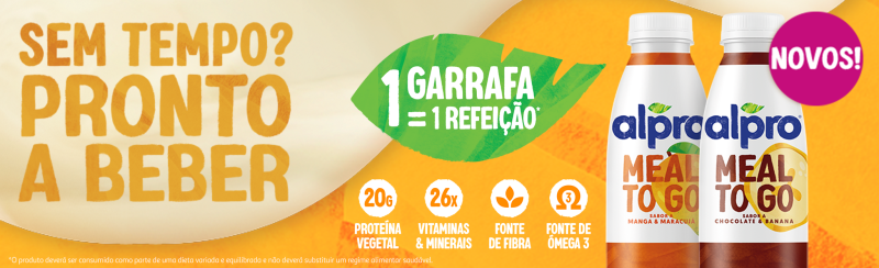 A rotina acelerada da vida moderna representa frequentemente um desafio às escolhas alimentares, levando muitas pessoas a saltar refeições ou a optarem por soluções pouco equilibradas do ponto de vista nutricional. Para ajudar naqueles dias mais corridos, em que o tempo simplesmente não chega (nem para um segundo de pausa…), Alpro apresenta: Alpro Meal to Go. Uma bebida que é nutricionalmente equivalente a uma refeição, porque para além de conter 26 vitaminas e minerais, é fonte de fibra e tem 20g de proteína por garrafa, sendo assim uma alternativa fácil e conveniente, nos dias em que não há muito tempo para comer ou preparar uma refeição.