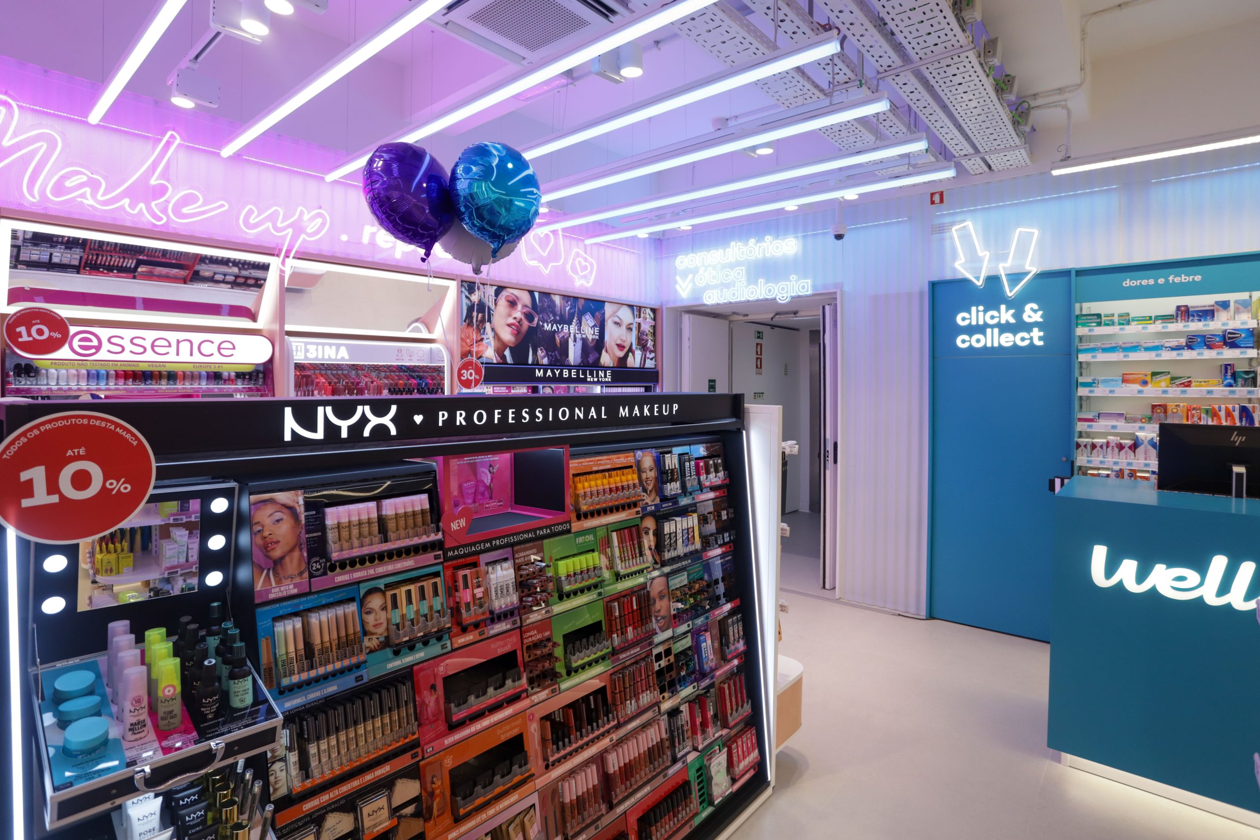 Além dos produtos de dermocosmética e parafarmácia, estão disponíveis neste novo espaço grandes marcas de beleza, como Lancôme, Chloé, Rabanne, Clinique e Clarins. A loja conta ainda com um Mask Bar, um espaço exclusivo para máscaras de rosto e corpo, um Makeup Bar, dedicado ao aconselhamento personalizado e experimentação de produto, com as principais marcas de maquilhagem, em que se destacam Maybelline, 3INA, Wibo, Flormar, Essence, Nyx e Loreal Paris, e um WOW!Market, com produtos a partir de 1€.